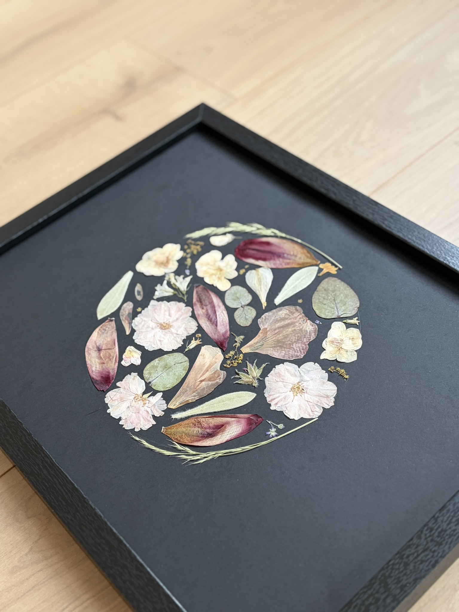 Vos fleurs fraiches sont triées délicatement, pressées avec patience, puis composées à la main dans mon atelier.